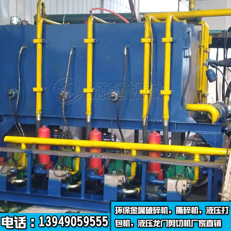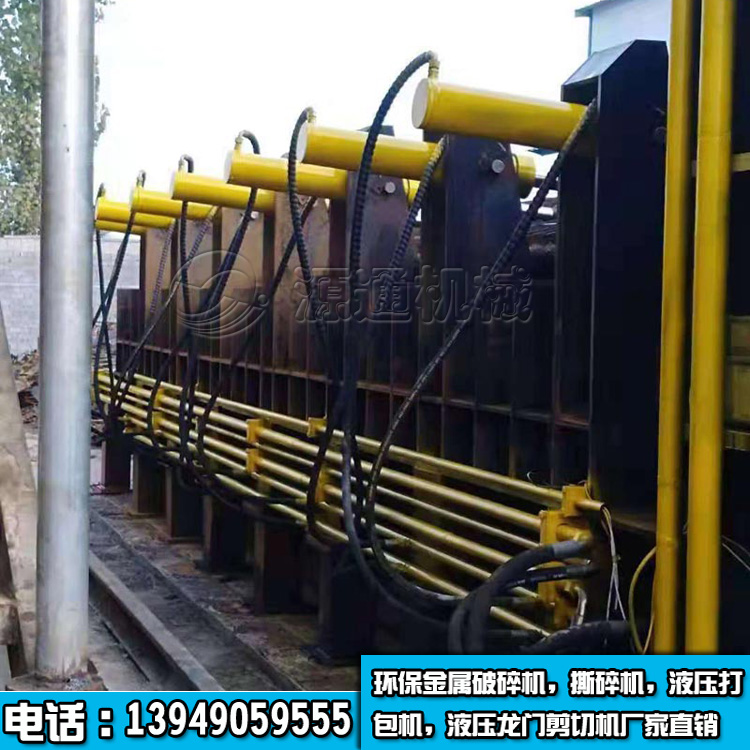 液壓龍門剪又叫做全自動液壓龍門剪斷機,龍門式液壓剪切機適用于金屬回收加工廠、報廢汽車拆解場、冶煉鑄造行業,對各種金屬進行冷態剪斷,加工成合格爐料。源通機械龍門式剪切機,剪切力400噸至1800噸。主要被剪切材料尺寸(12~20mm)*250mm。剪切次數每分鐘8~12次。該系列需簡單基礎設施。采用液壓驅動,與機械傳動式剪切機相比具有體積小、重量輕、運動慣性小、噪音低、運作平穩、操作靈活、剪切斷面大等特點。液電一體化控制、可實行單次、連續動作轉換、使用簡單方便、可在任意工作位置停止、運行、易于實現過載保護。適用范圍廣泛,既可作金屬回收加工單位的加工設備,又可作為工廠鑄造車間的爐料加工和機械建筑行業的金屬剪斷加工設備。